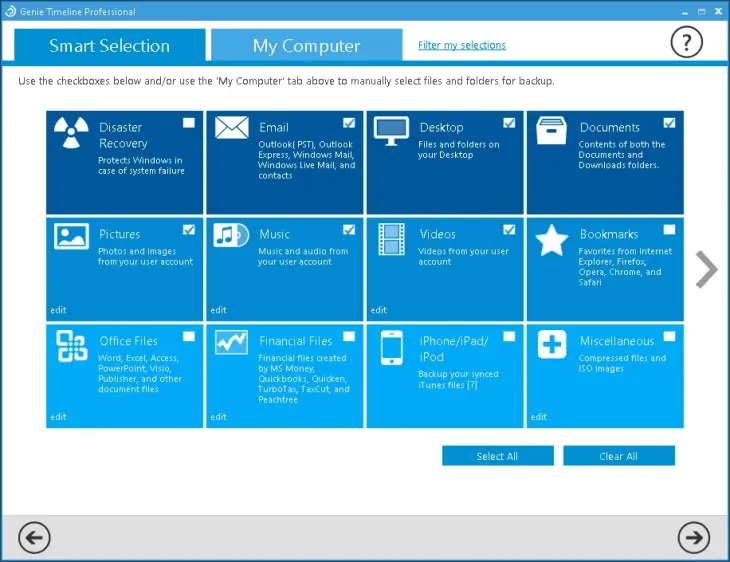 You can customize your Smart Selections in Genie Timeline Pro to back up only certain file types. You can also choose to use AES encryption, which is military-grade and uses 256 bits of encryption, to protect your backup.