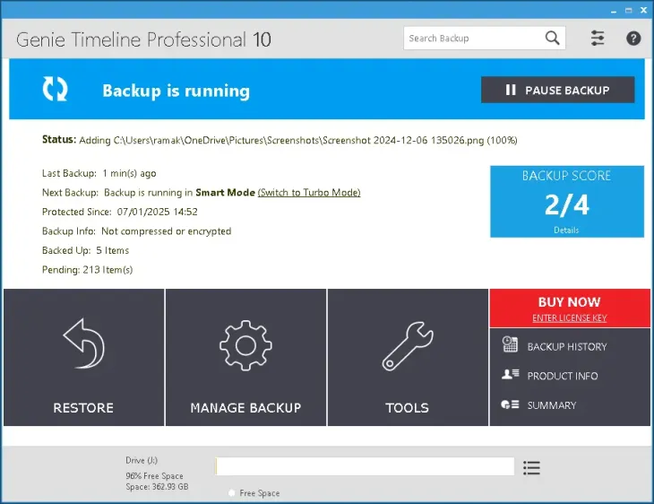 Genie Timeline Pro 10 offers a real-time backup solution for Windows users, allowing you to back up your files and folders according to your preferences. The software provides a straightforward, user-friendly, and automated method for backing up your data.