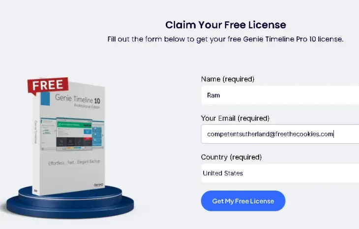 Enter your name and email address, choose your country, and click the “Get My Free License” button to get your license code.