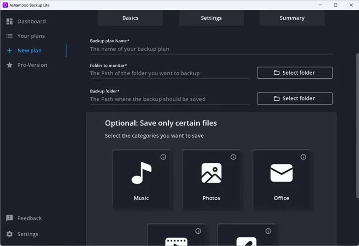 Difficult backup configurations are a thing of the past. Making a new backup plan with Ashampoo Backup Lite is as easy as 1, 2, 3.