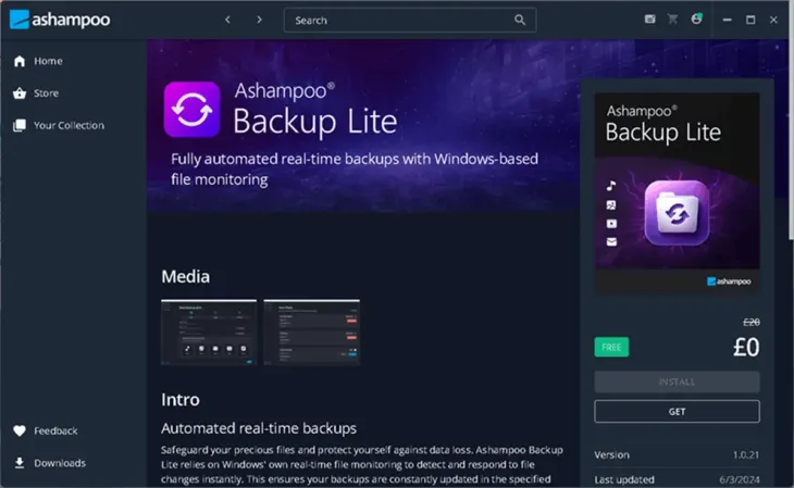 Ashampoo’s Backup Lite uses Windows’ real-time file monitoring to make sure that your backups are always up to date.