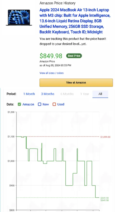 Price History Access: You can see the pricing history of any product on Amazon, regardless of the seller or condition.