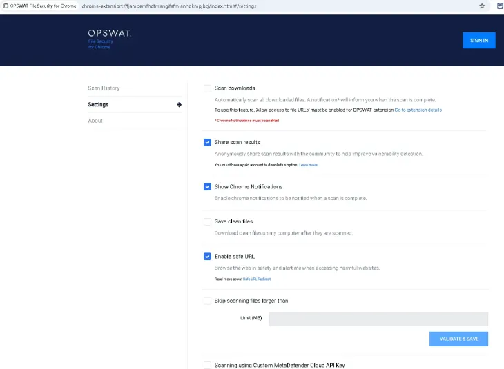 With this extension, users can run full security checks on their files using the OPSWAT Cloud, which employs 24 malware engines. It can employ OPSWAT Threat Intelligence to verify the URL’s reputation as an added safety measure.
