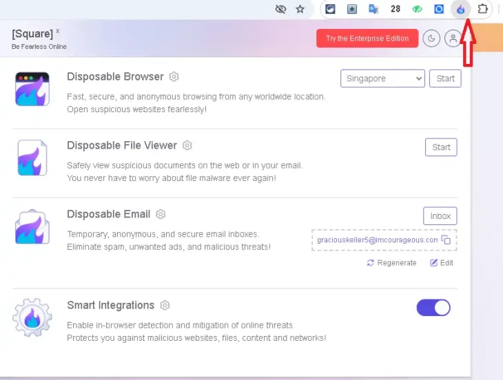 The extension’s “Smart Integrations” provides real-time protection besides its disposable browser and file viewing features.