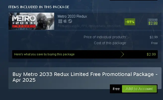 - Visit GOG: Head to the GOG giveaway page or search for Metro 2033 Redux on Steam.
