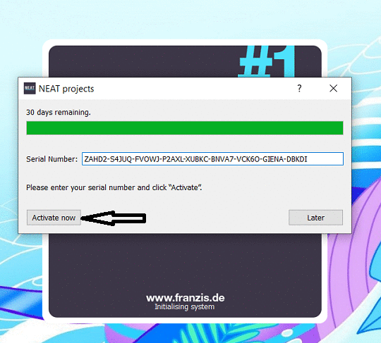 You will receive an email from Franzis (registrierung@post.franzis.de) in a few minutes. Confirm your email address by clicking the “Click Here to Activate” link.