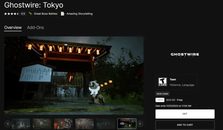 Get Ghostwire: Tokyo, a game worth $59.99, for free for a week in the Epic Games Store.